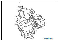 • If the runout is outside of the repair limit, check drive gear assembly condition; foreign material may be caught between drive gear and differential case, or differential case or drive gear may be deformed, etc.