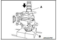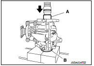4. Set drifts (A and B) to the right and left side bearing adjusting shims individually. Press center stem assembly with side bearing to install gear carrier to center stem assembly.