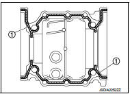 7. Apply liquid gasket (1) to mating surface of rear cover. Overlap both ends of the bead for at least 3 mm (0.12 in).