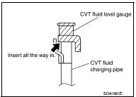 5. Fill CVT fluid from CVT fluid charging pipe to the specified level.