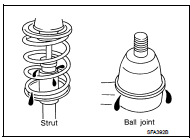 • Check strut (shock absorber) for oil leakage or other damage.