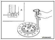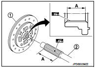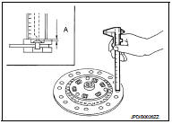 • Measure the depth “A” to clutch disc facing rivet heads, using a calipers. If it exceeds the allowable wear limit, replace clutch disc.
