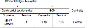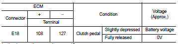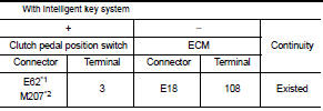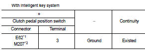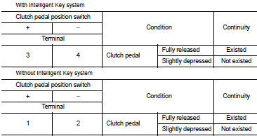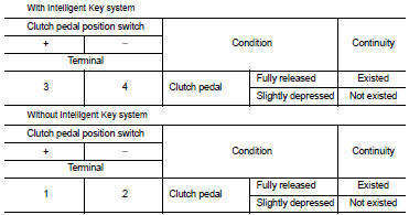 2. Check the continuity between clutch pedal position switch terminals as per the following conditions.