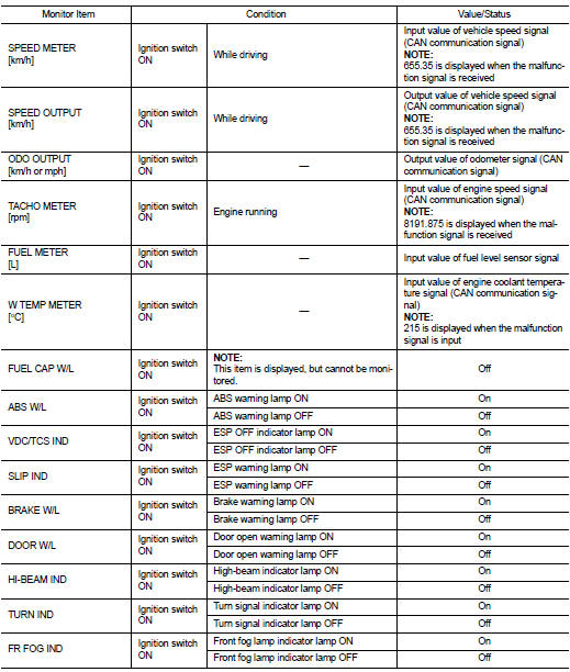 CONSULT-III DATA MONITOR STANDARD VALUE