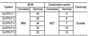 3. Check continuity between BCM harness connector and combination switch harness connector.