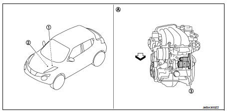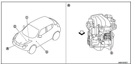 2. Transmission range switch (CVT models) Refer to TM-131, "CVT CONTROL SYSTEM : Component Parts Location" (MR16DDT), TM-314, "CVT CONTROL SYSTEM : Component Parts Location" (HR16DE).