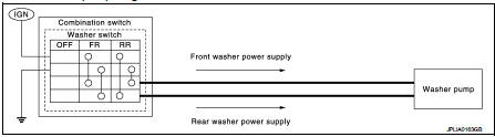 • Combination switch switches polarity between front washer operating and rear washer operating to supply power to the washer pump on ground.