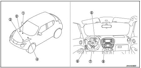 3. ECM Refer to EC-25, "ENGINE CONTROL SYSTEM : Component Parts Location" (MR16DDT), EC-455, "ENGINE CONTROL SYSTEM : Component Parts Location" (HR16DE) or EC-813, "Component Parts Location" (K9K).