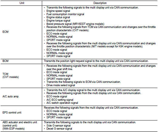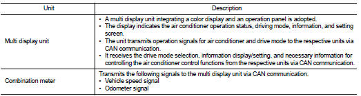 • It is connected to other units via CAN communication and performs the drive mode control, air conditioner control, display of various information, and various settings.