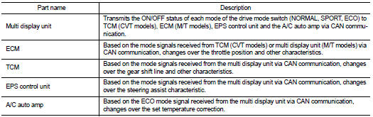 • The multi display unit connects to other units via CAN communication and performs the drive mode control.