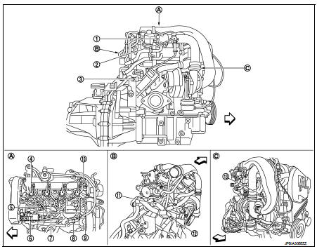 The exhaust gas temperature sensor 1 is used to detect the exhaust gas temperature before turbocharger.