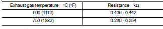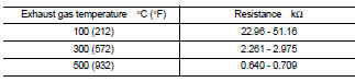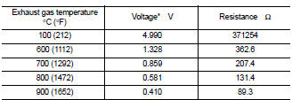 *: This data is reference value and is measured between ECM terminal 64 (Exhaust gas temperature sensor 1) and ground.