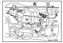 Refer to INT-35, "BACK DOOR LOWER FINISHER : Removal and Installation" 2. Remove bolt (A), and then remove condenser (1) from the vehicle body.