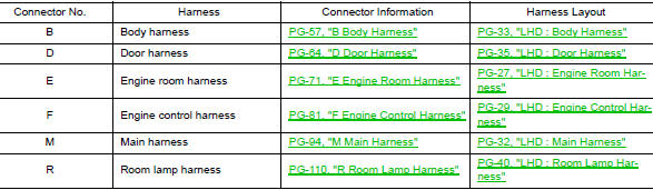 Connector information and harness layout are described in “POWER SUPPLY, GROUND & CIRCUIT ELEMENTS” Section.