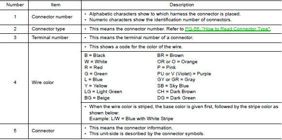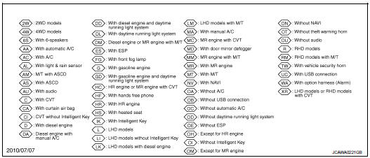 Nissan Juke Service and Repair Manual : Connector Information/Explanation of Option Abbreviation