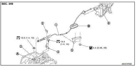 2. Remove the control cable from the CVT shift selector assembly. Refer to TM-481, "Removal and Installation".