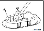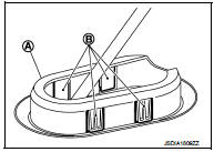 3. Disengage the pawls (B) of the grommet (A), and pull downwards to remove.