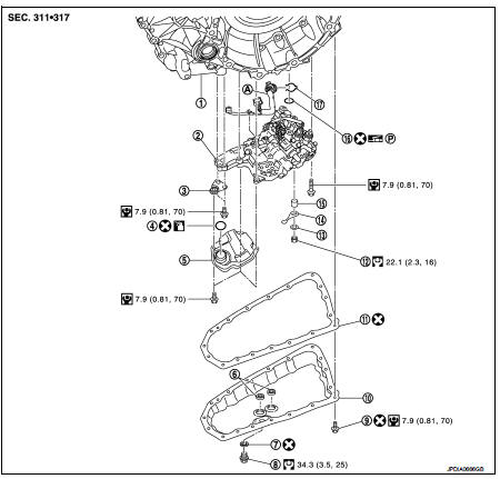 4. Tighten the oil pan mounting bolts again clockwise from (1) shown in the figure to the specified torque.