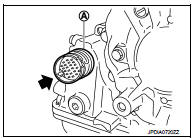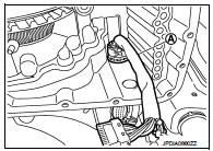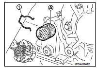 16. Remove CVT unit connector (A) from the transaxle case inside.