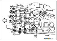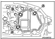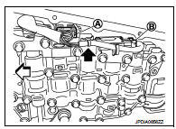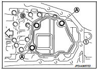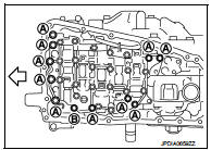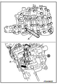15. Remove the control valve mounting bolts (A) and (B), and then remove the control valve from the transaxle case.