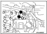 2. Install the oil pan assembly to the transaxle case, and then temporarily tighten the oil pan mounting bolt.