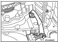 21. Fill CVT fluid from CVT fluid charging pipe to the specified level.