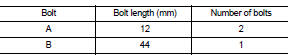 12. Remove the oil strainer assembly mounting bolts (A) and (B), and then remove the oil strainer assembly (1).