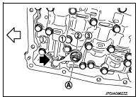 13. Install the manual plate (1) while aligning with the groove (A) of the manual valve.