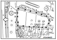 3. Tighten the oil pan mounting bolts in the order shown in the figure to the specified torque.