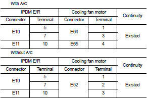 2. Check the continuity between IPDM E/R harness connector and cooling fan motor harness connector.