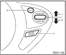 • Depress the accelerator pedal. When the vehicle attains the desired speed, push and release the COAST/SET switch.
