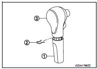 1. Slide the selector lever knob cover (1) down.