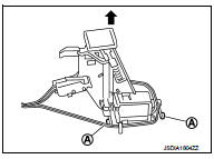 6. Lift up the shift lock unit pawl (A), and pull the unit out in the
