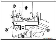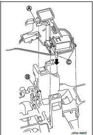 2. Align the indented part (A) of the shift lock unit with the projecting part (B) of the CVT shift selector.