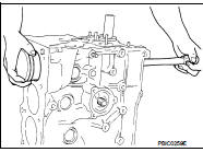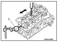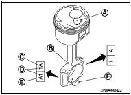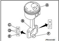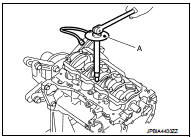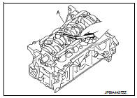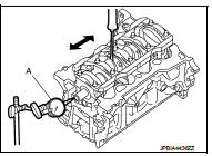4. Remove piston and connecting rod assembly with the following procedure: Before removing piston and connecting rod assembly, check the connecting rod side clearance. Refer to EM-112, "Inspection".