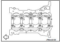 Loosen and remove main bearing cap bolts in reverse order as shown in the figure.
