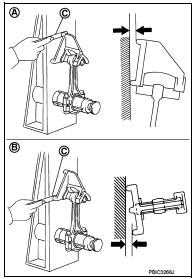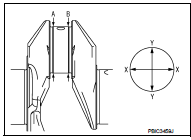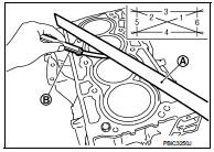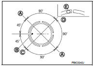 4. Measure the dimensions of movement amounts A and B on circumference of the flywheel on the transaxle side.