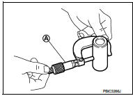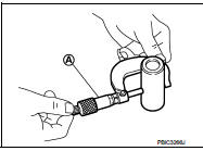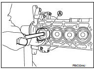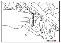 Remove main bearing cap and bearings, and using the scale (A) on the plastigage bag, measure the plastigage width.