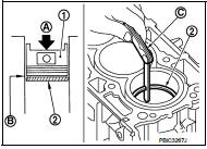 c. Push out piston pin with stick of outer diameter approximately 18 mm (0.71 in).