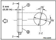 Movement Amount of Thrust (Fore-and-Aft) Direction Measure the movement amount of thrust (fore-and-aft) direction when 100 N (10.2 kg, 22 lb) force is added at the portion of 125 mm (4.92 in) radius from the center of flywheel.