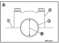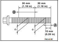 If it exceeds the limit (a large difference in dimensions), replace main bearing cap mounting bolt with a new one.