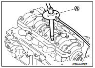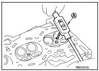 a. Ream cylinder head valve guide hole with a valve guide reamer (commercial service tool) (A).
