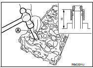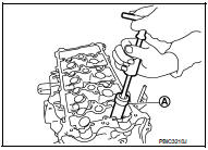 a. To remove valve guide, heat cylinder head to 110 to 130°C (230 to 266°F) by soaking in heated oil (A).