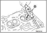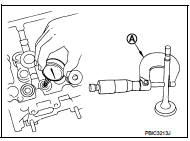 6. Remove valve oil seal with a valve oil seal puller [SST: KV10107902 (J-38959)] (A).