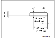 Cylinder Head Bolts Outer Diameter • Cylinder head bolts are tightened by plastic zone tightening method. Whenever the size difference between (d1) and (d2) exceeds the limit, replace them with a new one.