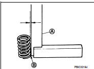• Set a try square (A) along the side of valve spring and rotate spring. Measure the maximum clearance between the top of spring and try square.