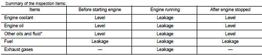 Inspection for Leakage The following are procedures for checking fluids leakage, lubricates leakage, and exhaust gases leakage.