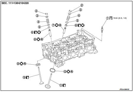 9. When valve guide must be replaced, refer to EM-212, "Inspection" to removal.