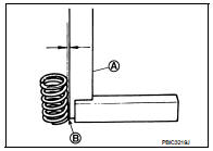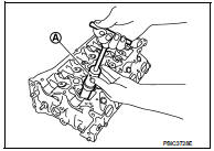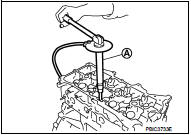 • Set a try square (A) along the side of valve spring and rotate spring. Measure the maximum clearance between the top of spring and try square.