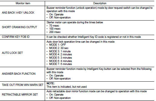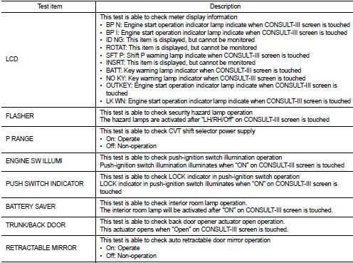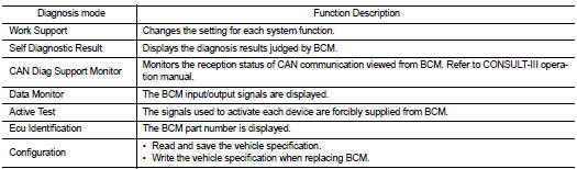 CONSULT-III performs the following functions via CAN communication with BCM.